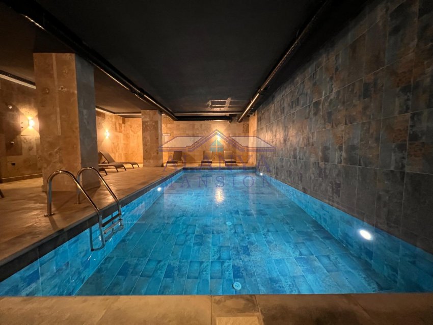 Инфраструктура комплекса: летний бассейн с зоной загара и отдыха, детский бассейн, крытый зимний бассейн, хамам, сауна, фитнес-зал, детская игровая комната, детская игровая площадка, сад, зона барбекю с беседкой, подземная автопарковка, система видеонаблюдения, смотритель за комплексом.